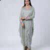+ Free ShippingPre-draped saree in deep maroon with a statement ruffle sleeved blouse and hand embroidered detailings on the waist.
